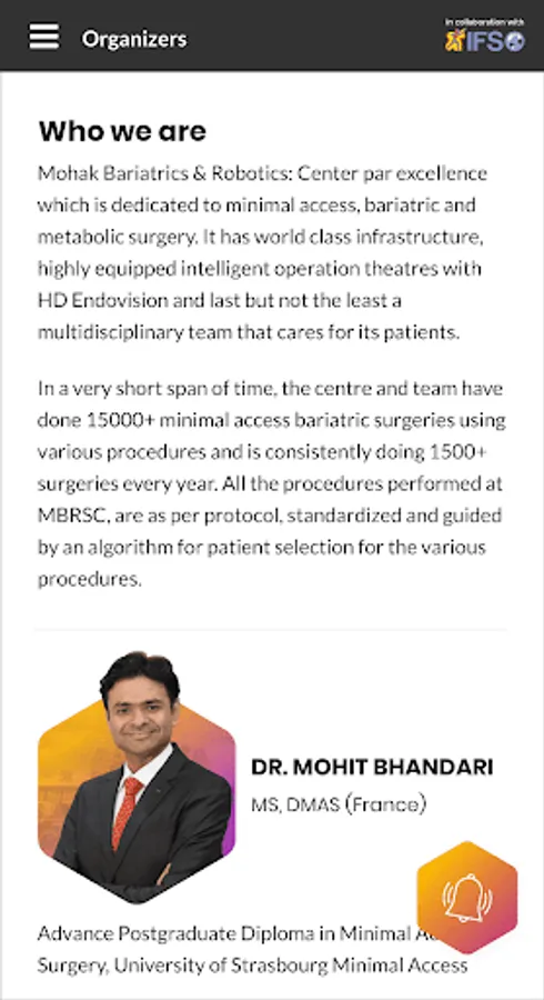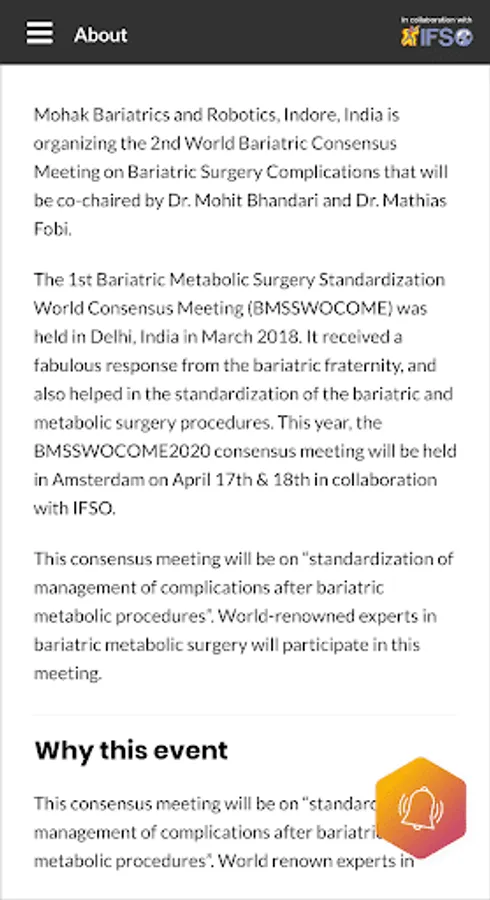 This consensus meeting will be on “standardization of management of complications after bariatric metabolic procedures”. World renown experts in bariatric metabolic surgery will participate in this meeting. A joint consensus statement from BMSSWOCOME and IFSO will be written and published timely.