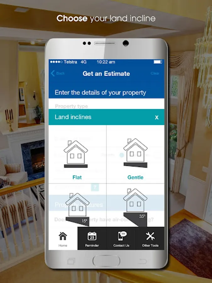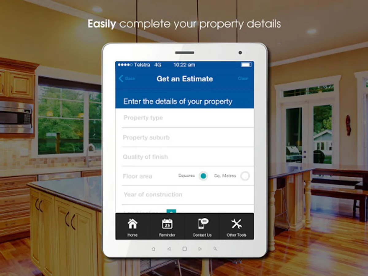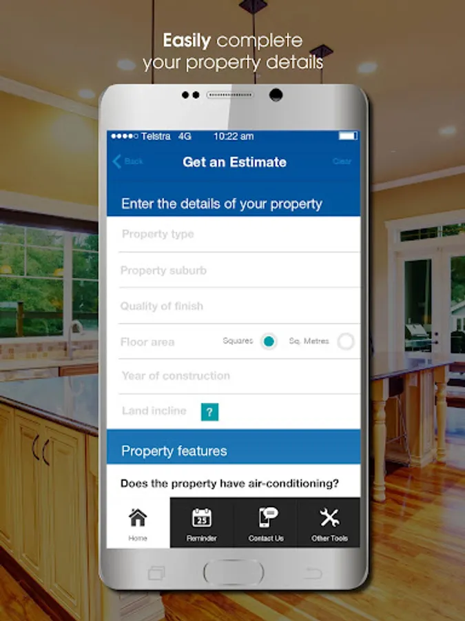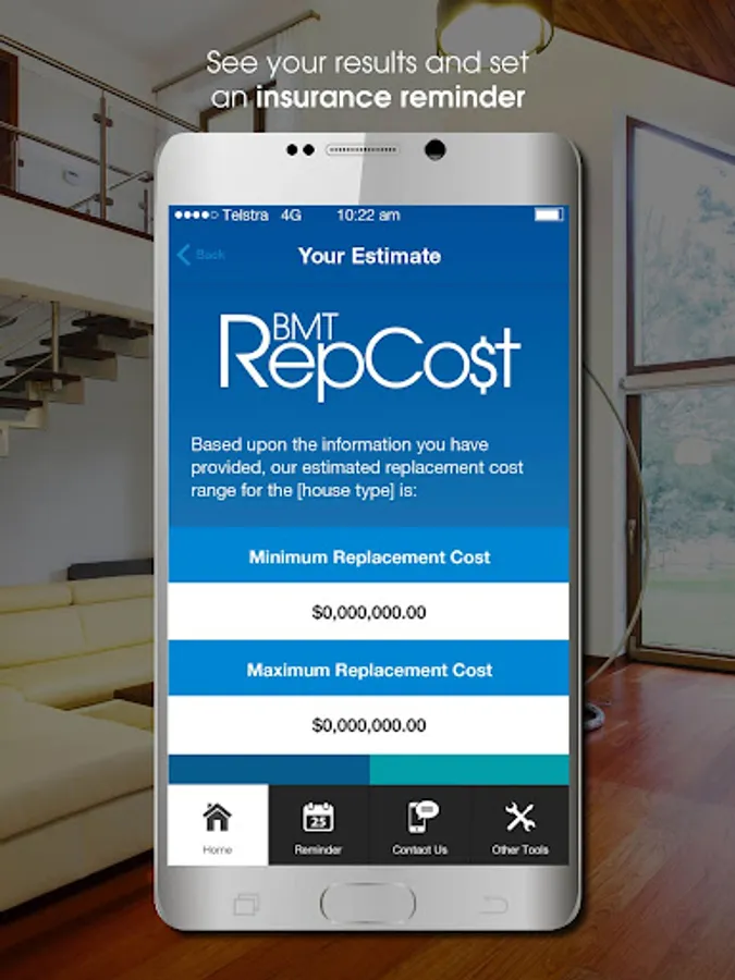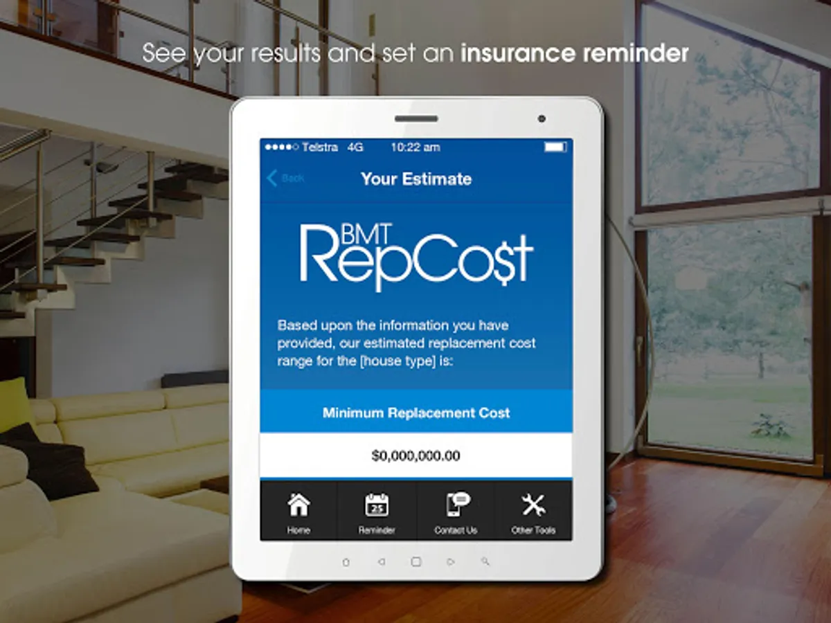 The App’s simple interface provides users with a list of questions to complete. The calculator will then determine the minimum and maximum cost range for the replacement of a building.