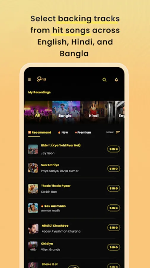 ➤ Constant Updating Music Library: Singistic’s music library is constantly updated with the trending hits (Keep an eye out for the latest additions on the home screen!).