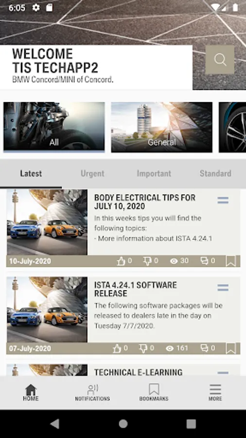 The BMW Group Technician Connect app provides BMW and MINI dealer technicians with the latest information from the Technical Service Department
