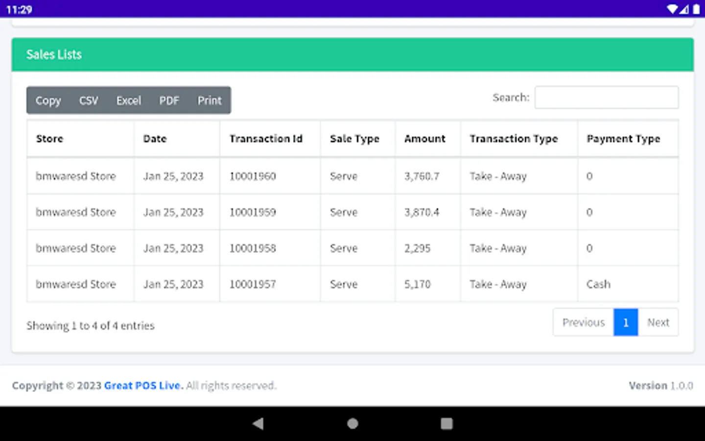 GPOS Live is an app designed to help manage and track sales, products, and transactions for clients and their companies/stores. It allows clients to efficiently manage their businesses by providing tools to track inventory, process transactions, and analyze sales data. It also allows clients to easily view and manage their sales and customer behavior, making it a valuable tool for making informed business decisions. GPOS Live is a comprehensive platform that streamlines the process of managing a retail or merchant business, by giving the company owners and managers the ability to control sales, inventory, and the customer experience in one place.