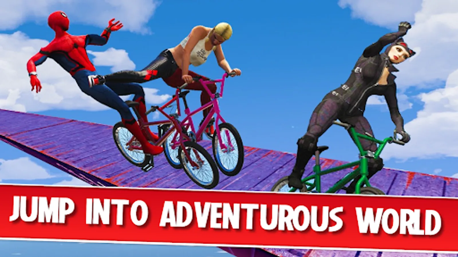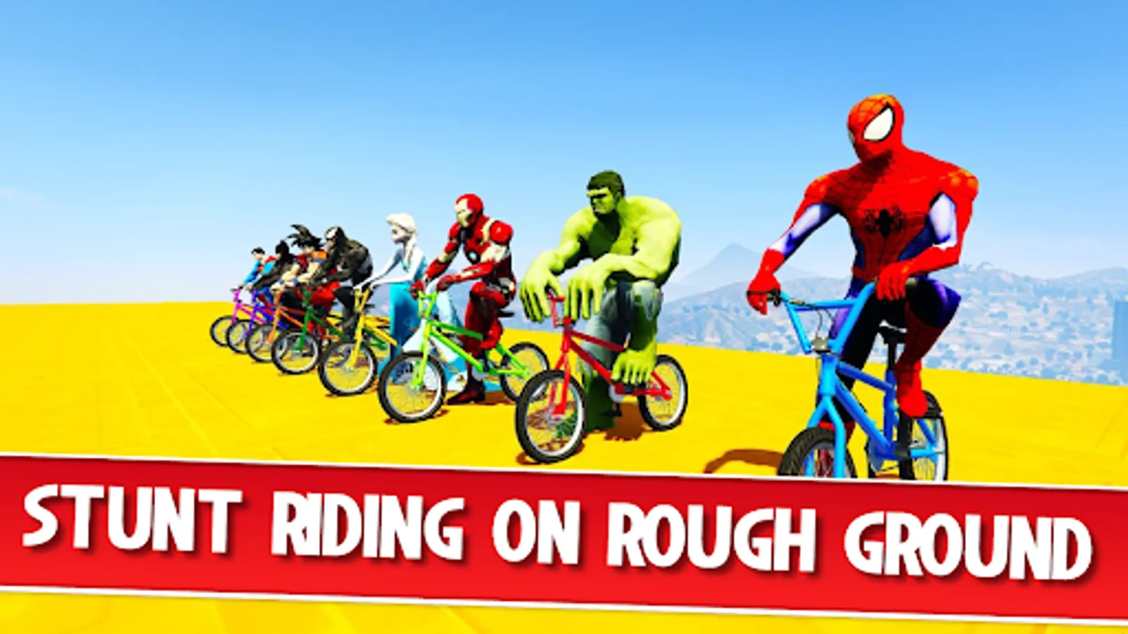 Welcome to new bmx cycle app, ride your BMX bike like a pro and perform a crazy cycle tricky stunt show for the stunt race in this superhero cycle avengers games. Make cool stunts and awesome freestyle bmx tricks on impossible tracks and crazy mega ramps with your super heroes and paddle fast to become fearless hero cycle rider. Keep your balance during your epic cycle racing show and cycle stunts in Real Superhero BMX Bicycle Stunt Race. Experience the real bicycling fun in this BMX racing challenge game of cycle racing games or cycle games 2022.