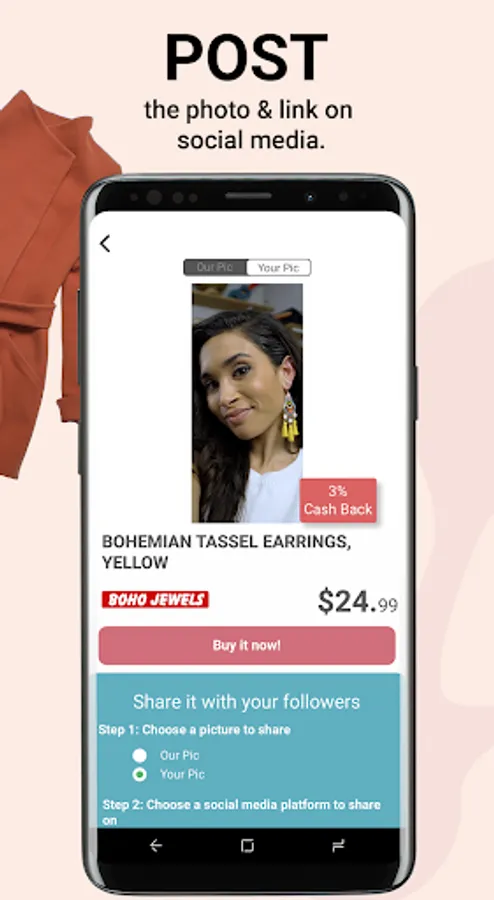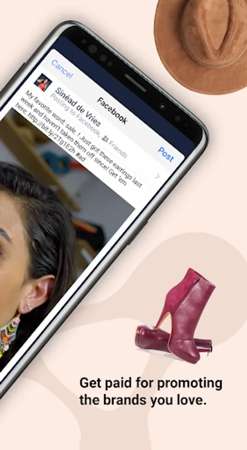 Download the free Added influence app to share items you shop or any items you like on social media, blog posts, emails and even texts with a special link – when someone clicks your link and buys that item, we give you a percentage of the sale.