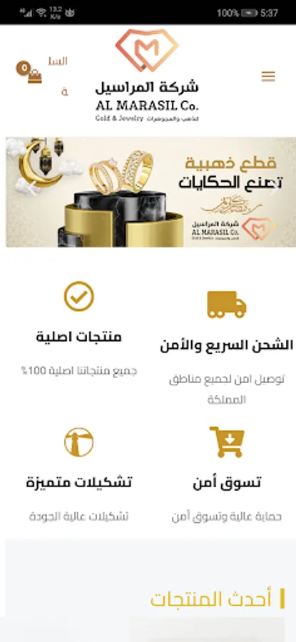 An application to display the products of Al-Marasil Gold and Jewelery Company