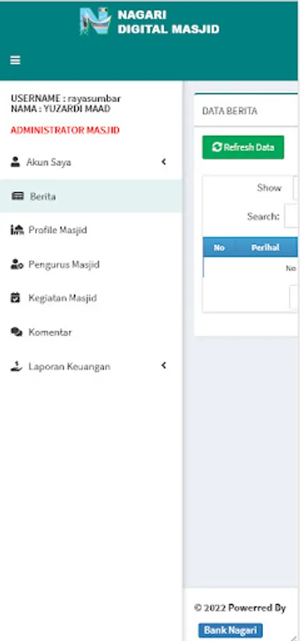 User Nagari Digital Masjid adalah Aplikasi bagi pengurus Masjid untuk mengelola informasi mengenai Masjid terkait