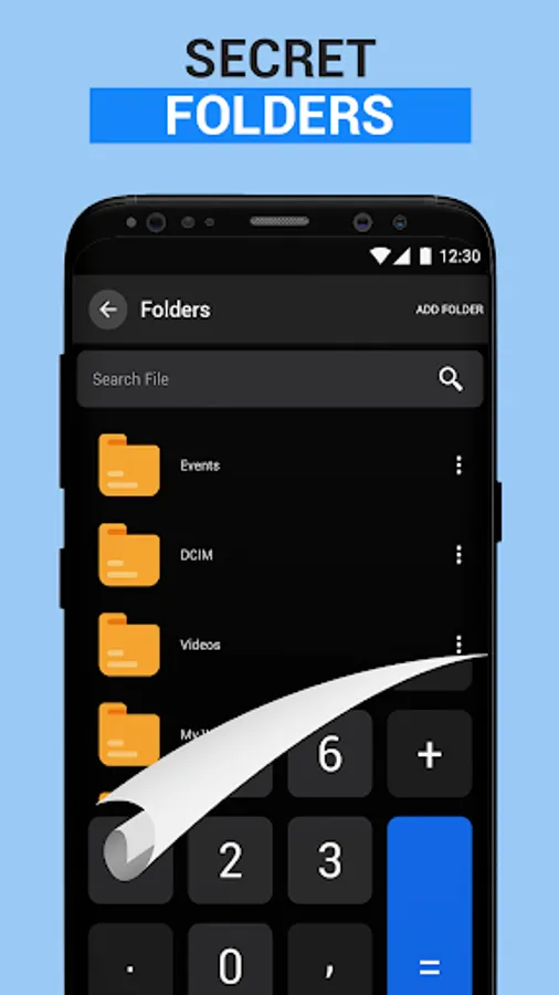 Hide and Lock audio, files, notes, contacts & credentials in a secret File Manager/Folders Management of smart calculator lock.