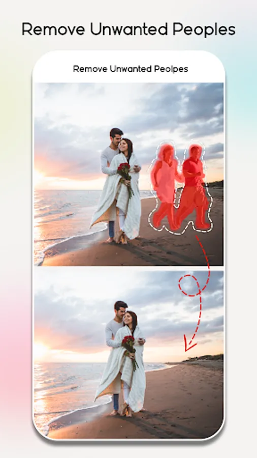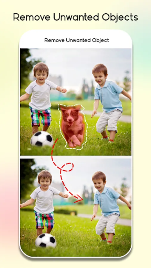 Remove objects or delete background from the photo is a smart app where you remove unwanted objects from pictures by just using brush tool and lasso tool. You just need to over line the object with a tool which is most suitable for object removal selection once the area is selected in red line it will disappear automatically.