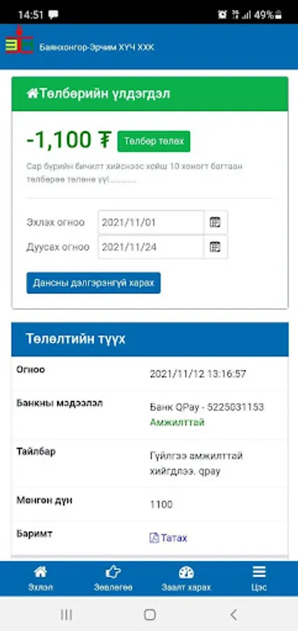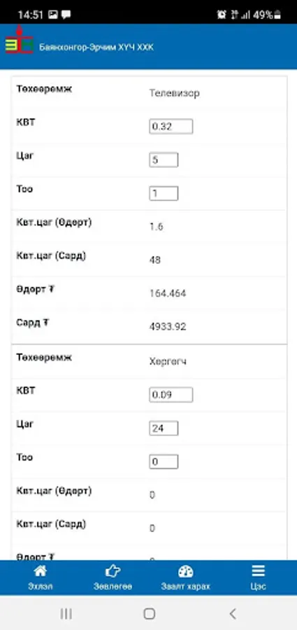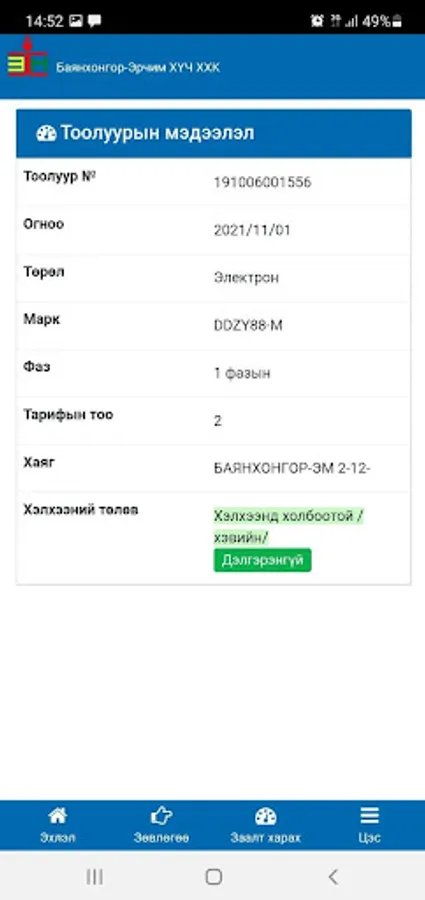 Цахилгаан эрчим хүчний хэрэглээ, нэхэмжлэх, дэлгэрэнгүйг харах