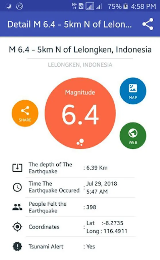 Every single information about the earthquake can be seen in detail about the direct map of the earthquake, the official web of the earthquake from USGS, as well as a direct check of tsunami potential through web tsunami.gov from NOAA USGS, you can also share the quake information to your friends.