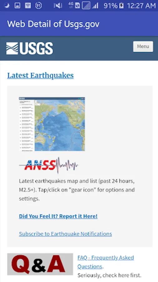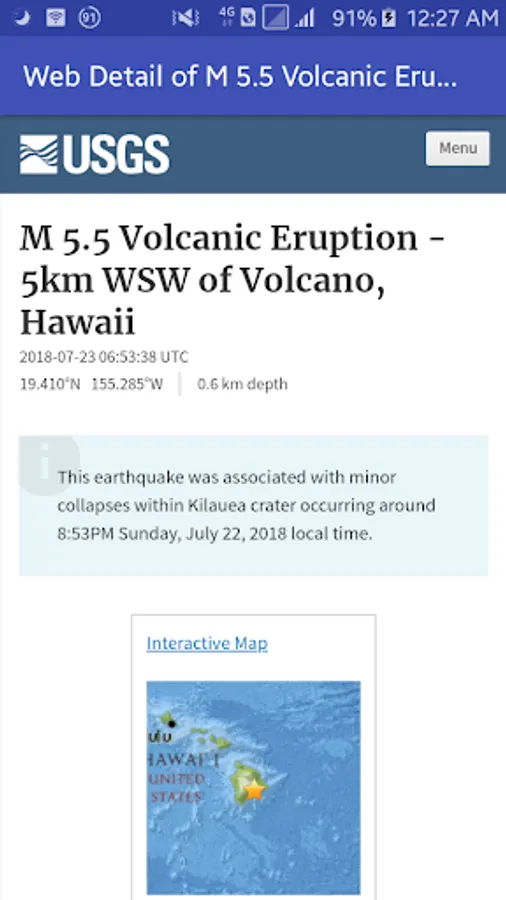 - USGS Earthquake web detail