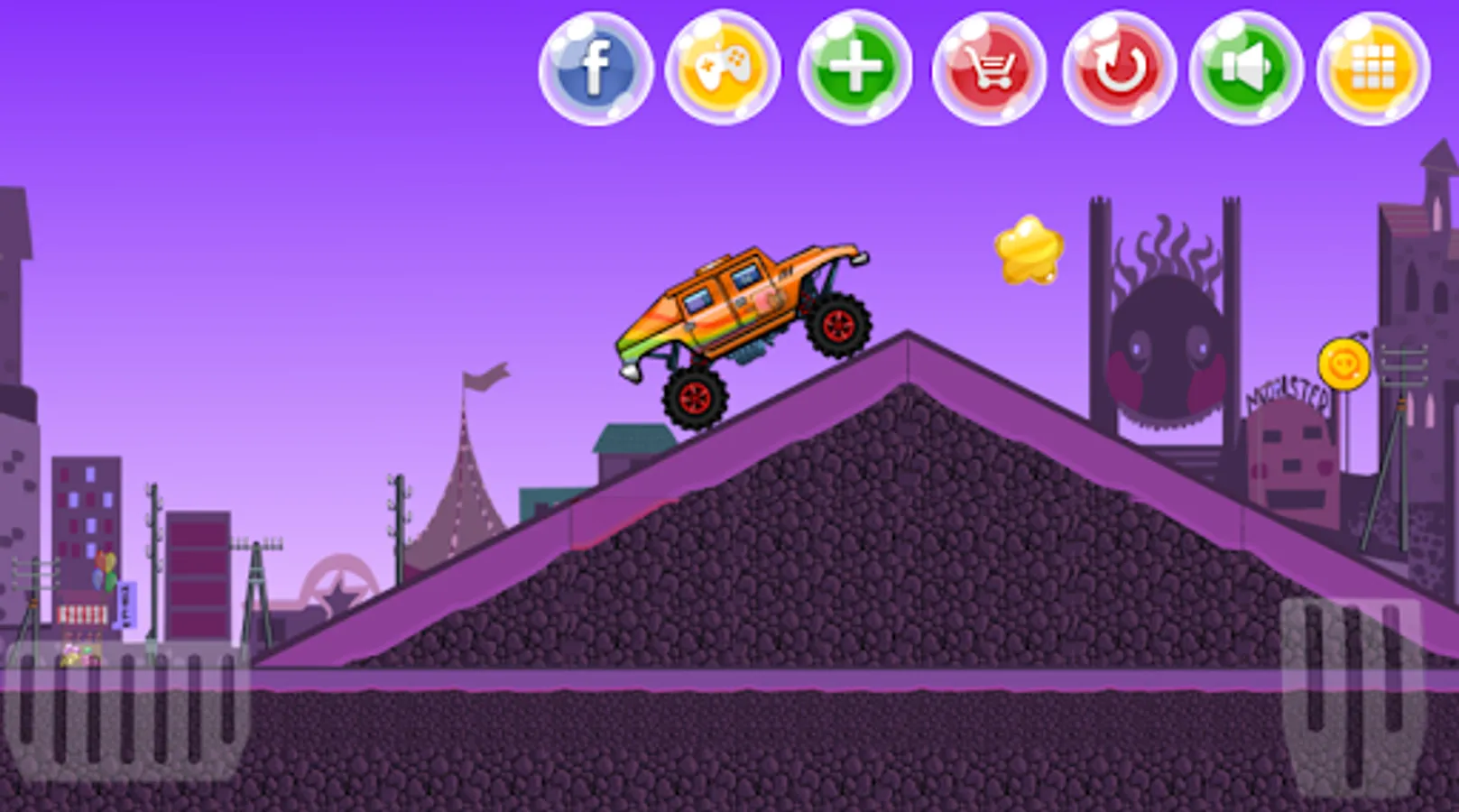 Drive a monster car on the rugged road, is that sounds crazy and exciting? In this driving game Biggy Race, you can show your skill and talent. Drive your great car, collect money and stars and buy new cars. Can you be the best driver in this world?