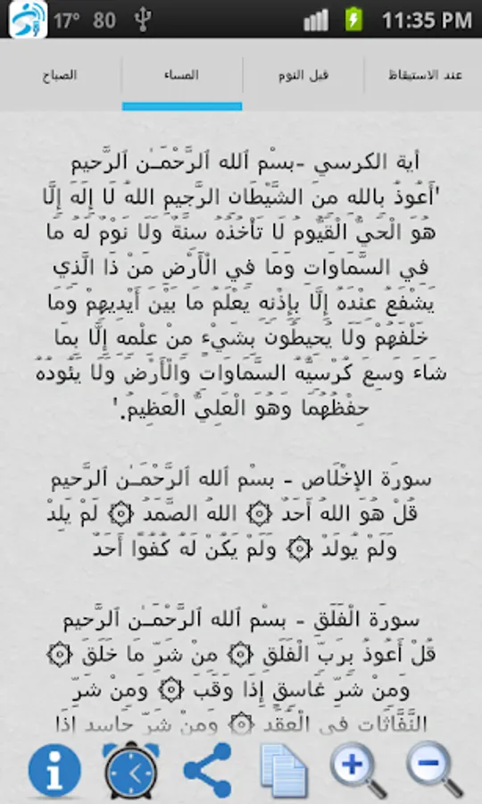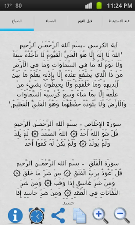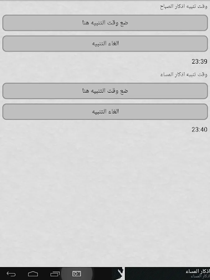 يحتوي التطبيق على مجموعة من الاذكار وهي: