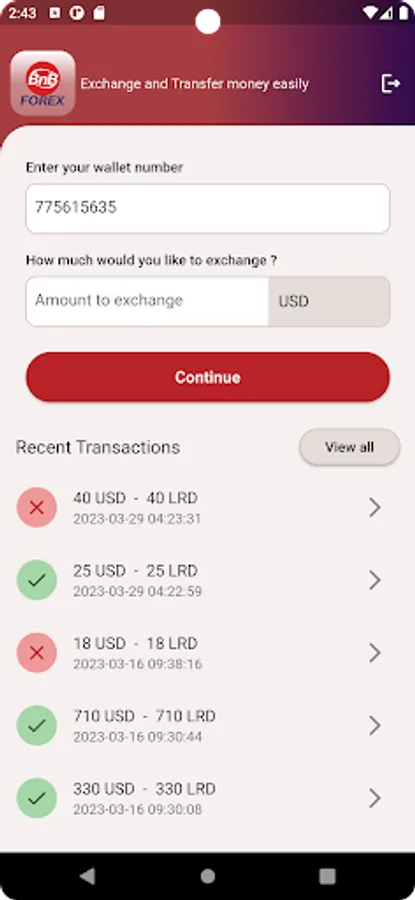 Self-service currency exchange Application. Use this App to exchange money in your mobile wallet account from US Dollars to Liberian Dollars.