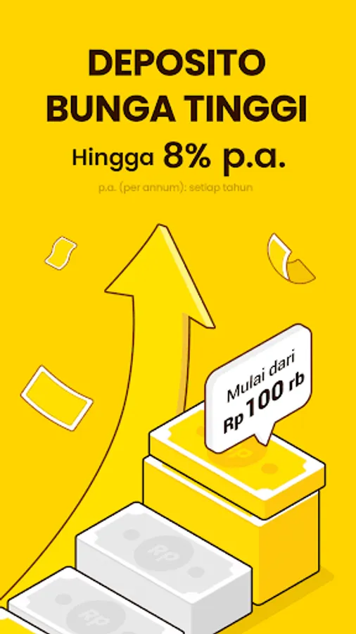 Investment-flavored term deposits! The interest is high up to 8% p.a. The initial deposit is light, you can start from just IDR 100,000. Flexible tenor, even from 7 days to 1 year!