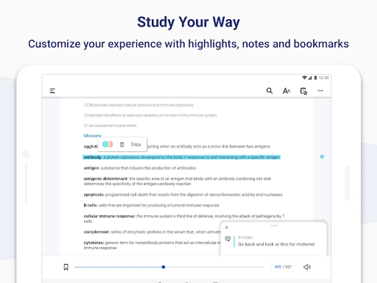 Read On-the-Go - With course materials always at your fingertips, you can read and study wherever you are. Highlights, notes, and bookmarks automatically sync across all of your devices.