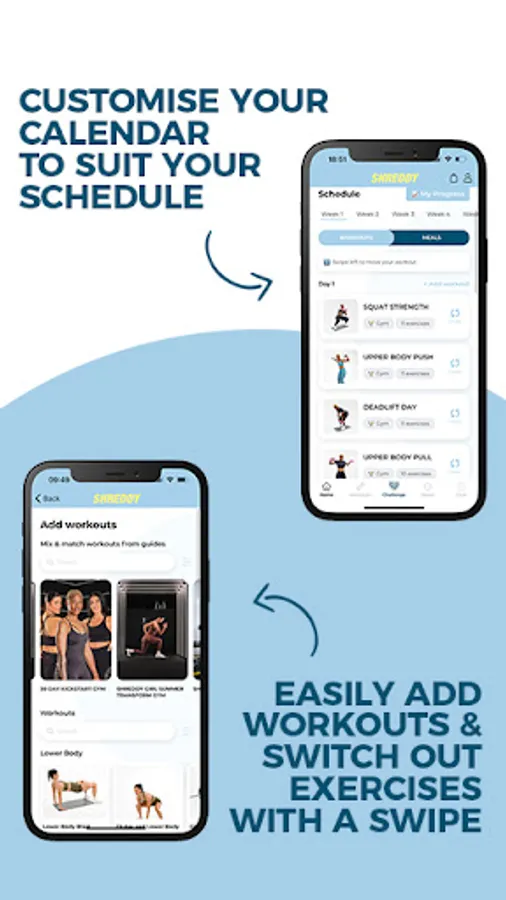 Find a workout guide created by our SHREDDY PT with a science-backed technique that’s perfect for you. Whether you’re a beginner or experienced, if you’re training in the gym or at home, have complete control over your diary with our customisable calendar. Follow a meal plan specifically tailored to your goals and dietary needs, designed by our expert nutritionist and get a serious sweat on in 30 minutes or less with the real-time classes!