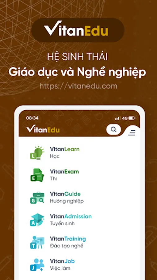 The VitanEdu Education and Career Ecosystem aims to support lifelong learning, lifelong career guidance, connect training units - learners - businesses, develop careers and improve the quality of work. work, thereby contributing to improving the productivity and performance of each individual; promote cultural activities in the community; accompanying the digital transformation in education, training and profession.