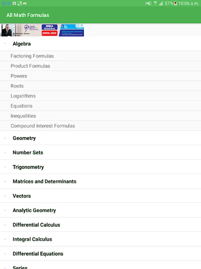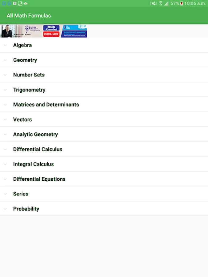 Contains hundreds of formulas, table and figure from Number Sets, Algebra, Geometry, Trigonometry, Calculus, Differential Equations, Series and Probability Theory.