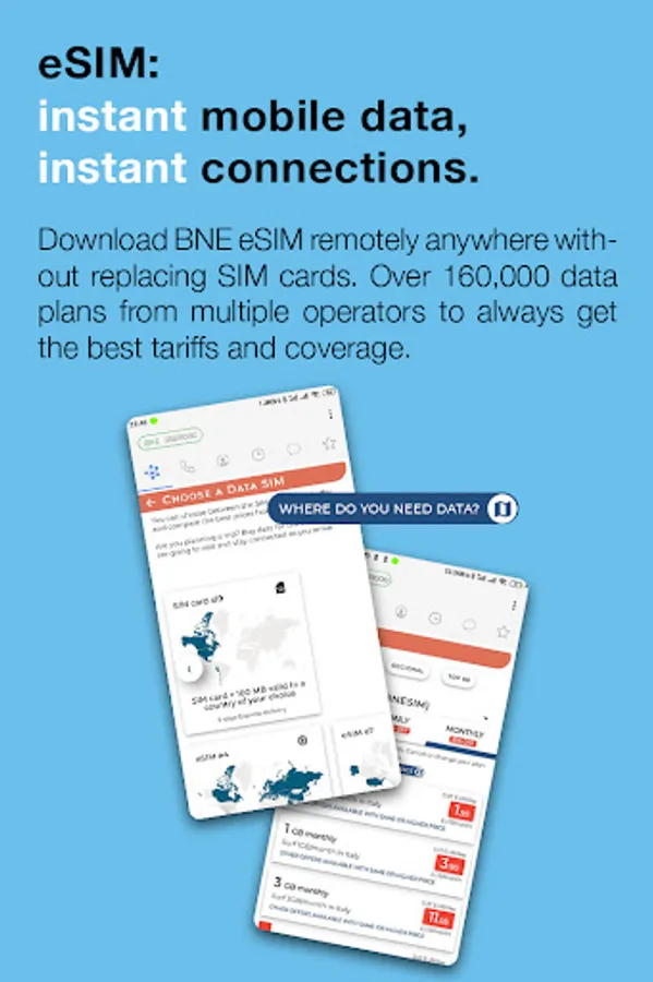 BNESIM is your go-to eSIM internet, voice, and VPN app for all your digital nomad and travelling needs. Get a virtual SIM card and enjoy prepaid cellular data on the go.