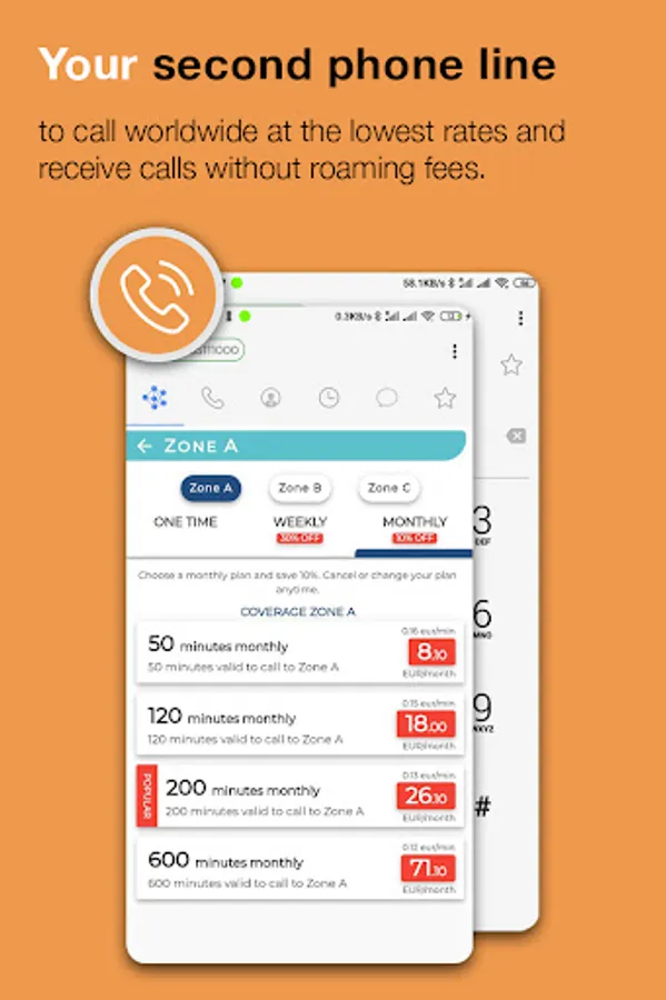 Pay per minute, regardless of your physical location, without roaming charges. With Smart CLI, your calls will be made using the target country's local phone number. Get a second SIM - receive SMS or send it without payment.