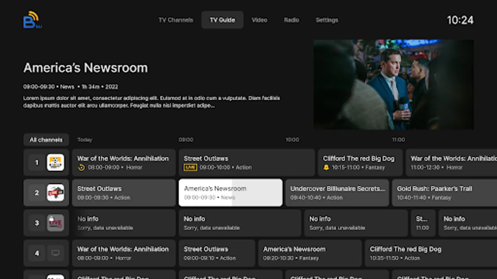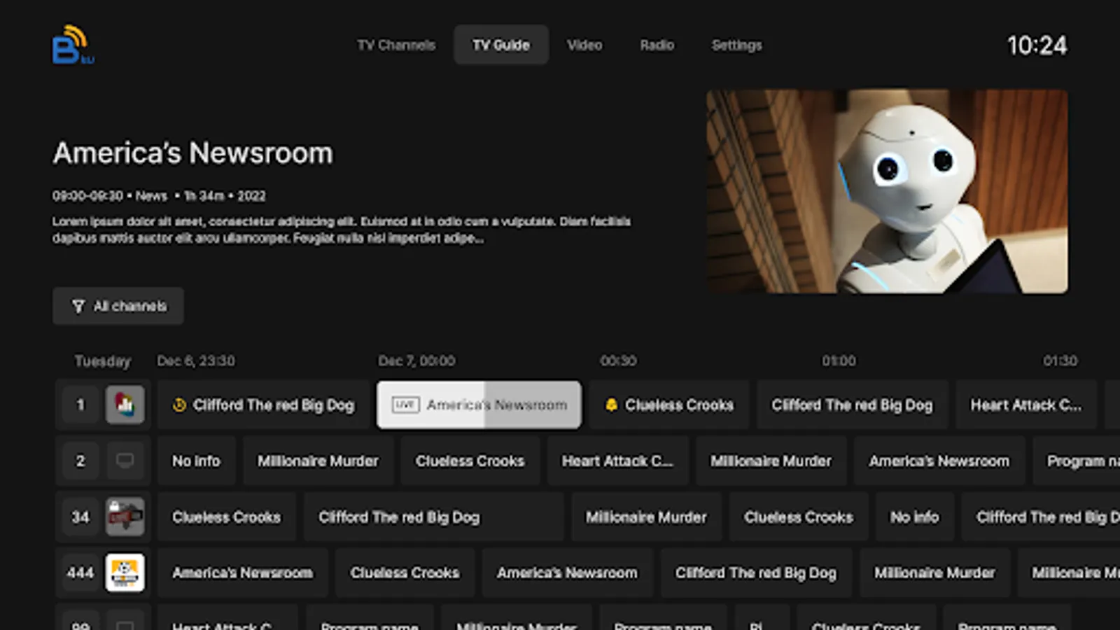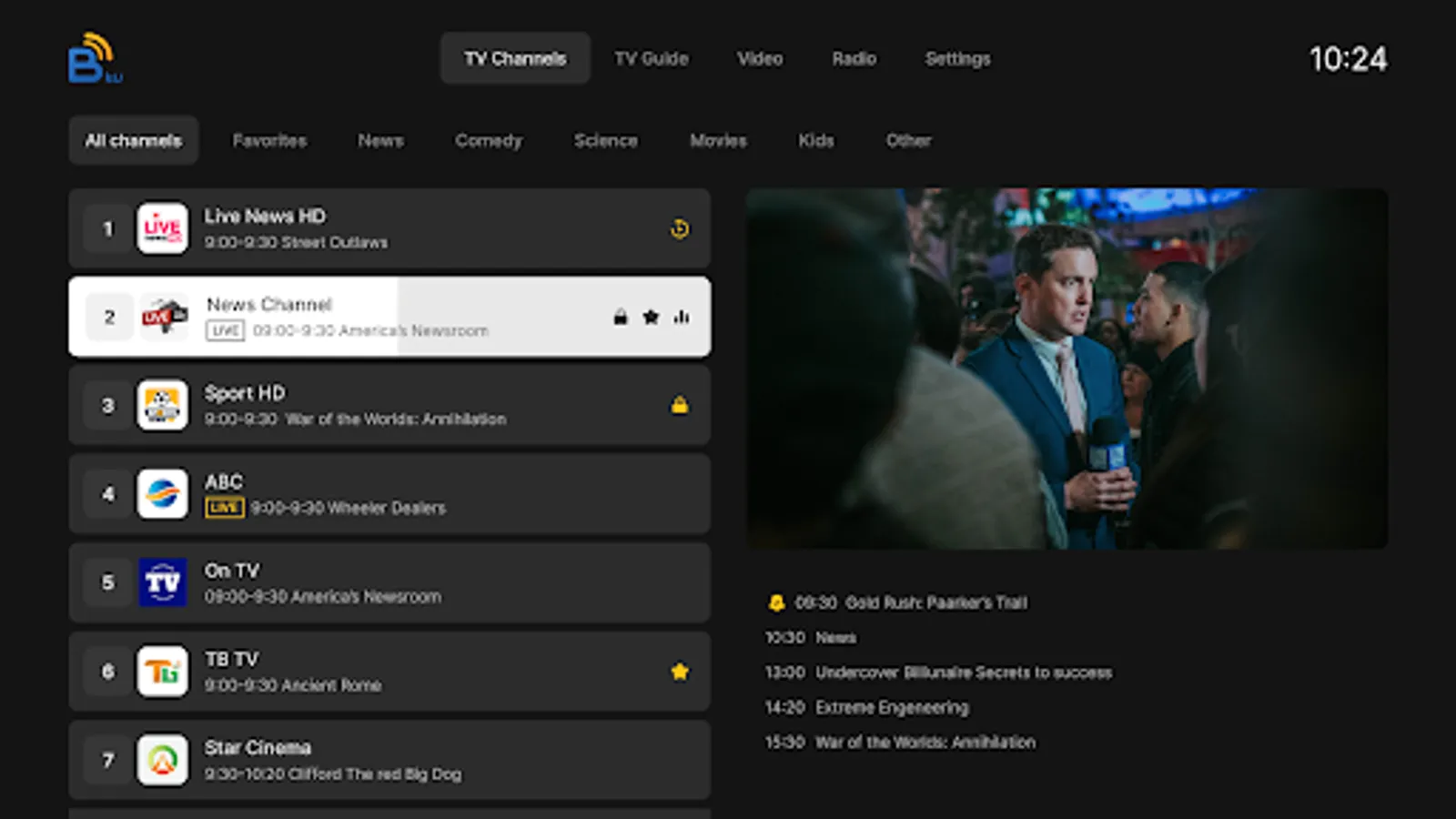 Introducing our new Bnet TV Pro app that lets you watch your favorite TV channels, access an EPG, and stream movies all in one place. With a user-friendly interface and a wide selection of channels and movies, you can easily find what you're looking for and enjoy high-quality streaming on your TV. Download now and start watching your favorite shows and movies on the big screen!