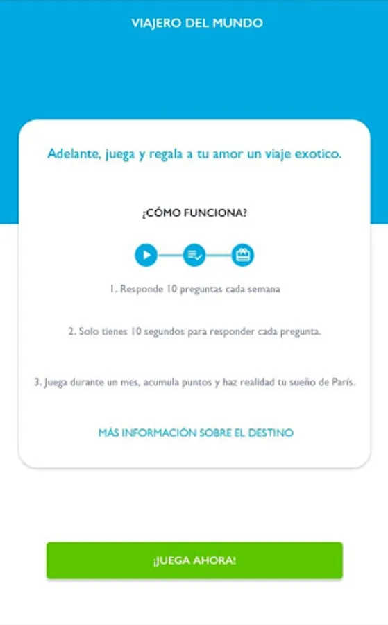 Movistar has this one-month contest that is your round-trip ticket to an exotic destination. It gives you the chance to win and travel to exotic destinations every month.