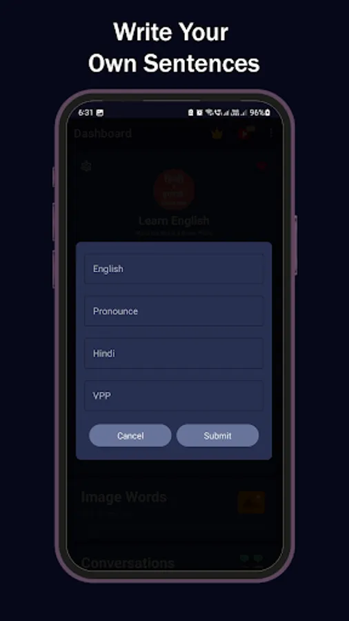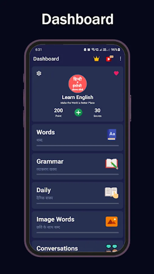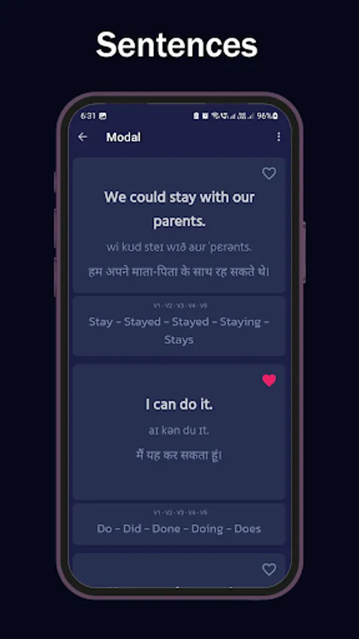 If you want to learn the meaning of HIndi to English sentences or words, this app has a complete word and sentence dictionary. You can also save the important English grammar rules, sentences and words simply by tapping on the heart icon. Take English learning tests to check your proficiency and learn English in a professional manner.