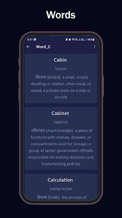 Are you looking for an easy English language learning app to fill your communication gap? How about using a Hindi to English language learning app learn English accurately? If your answer is yes, this Hindi to English language learning app is here for you. From learning the tenses and forms of verb to learning sentence structure and testing your Hindi to English language proficiency, this English learning app has all the best tools and resources you need to learn English efficiently. Learn English grammar and memorize word meanings from Hindi to English with a single app. Test your language learning capabilities and see where you lack to continue improving your learning.