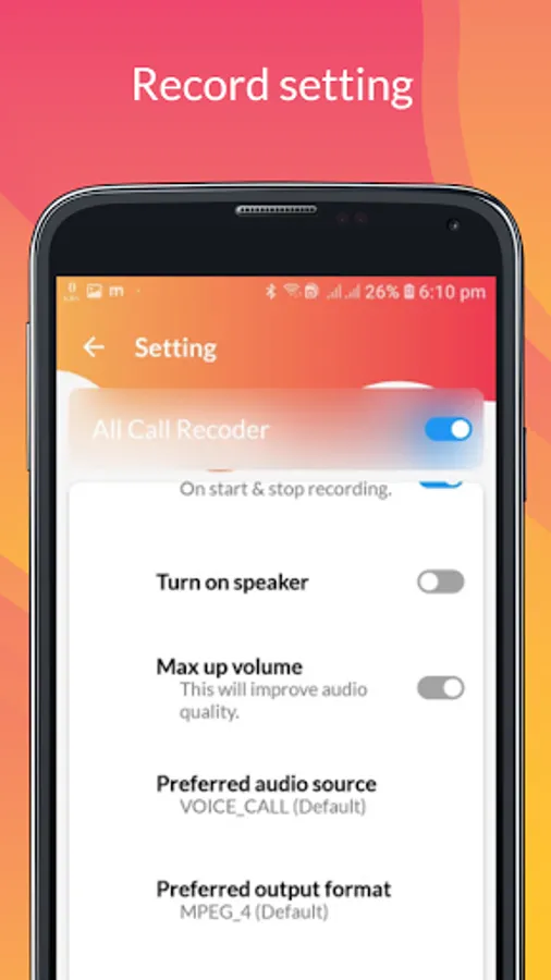 All Incoming & Outgoing Call Record In different Type Like AAC AMR Opus