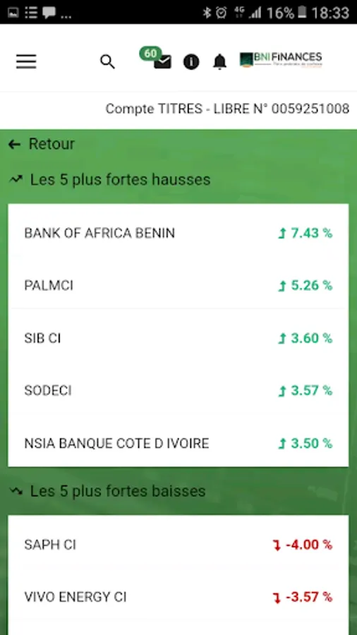 Our Mobile application (Easy Trade Mobile) allows you to have an overview of your accounts with easy access to main features such as: