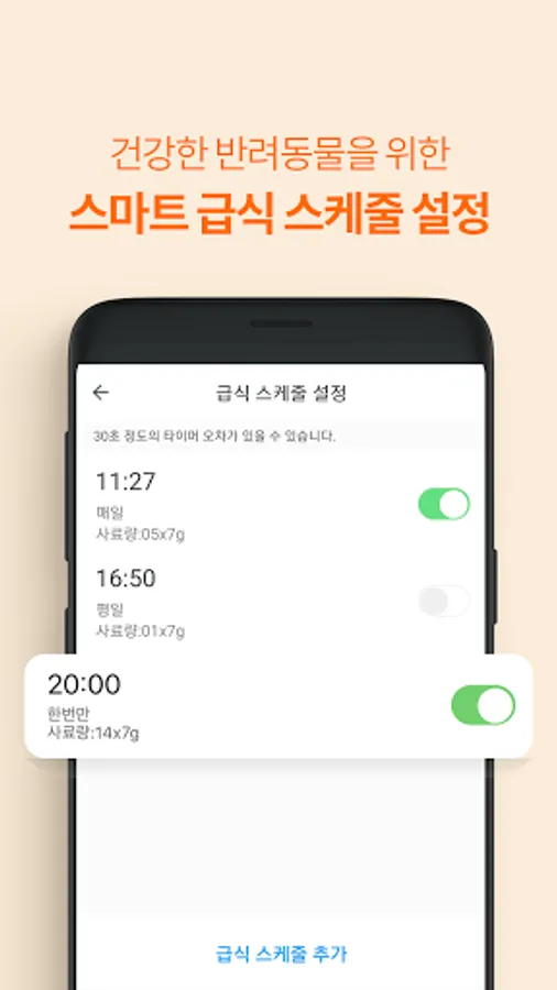 The automatic feeder dispenses up to 12 different feeding schedules to fit your pet's unique lifestyle. Precisely weighed meals can be easily set up and edited straight from your phone. Each meal dispenses 7g~140g of food.