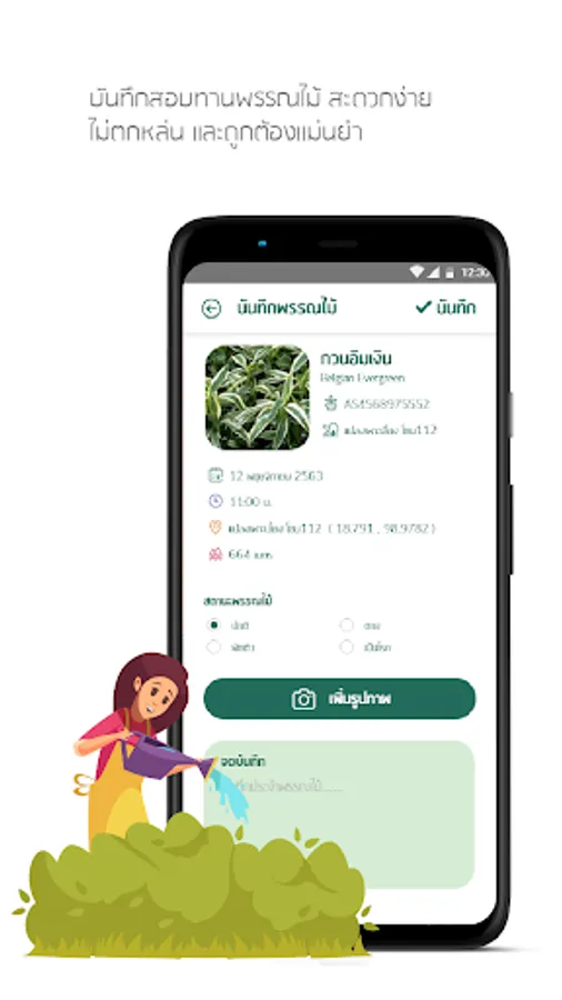 The Botanic Garden, an application that will help to monitor, grow, maintain and study a variety of plants. In forest areas that have been maintained to ensure the integrity of the vegetation. With growth tracking technology, locating and searching for rebirths Maintaining the integrity of Thailand's forest areas Effectively create a forest area
