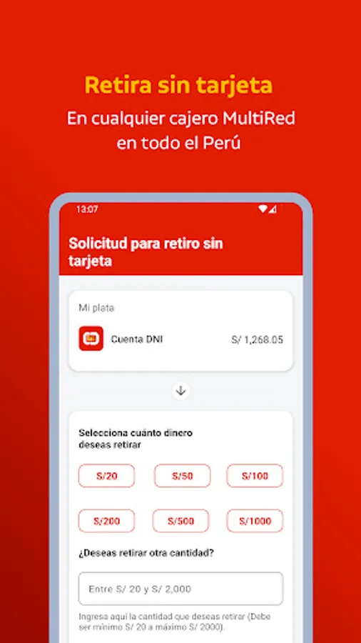 - Generation of authorization code for withdrawal without a card in the Banco de la Nación ATM network.