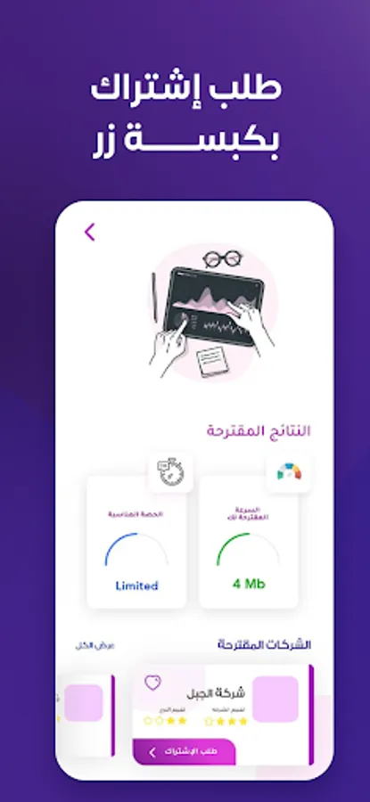 * The ability to request a subscription to the company that is right for you directly through the application from your place, as the application provides a service for delivery and installation of equipment and the issuance of the contract