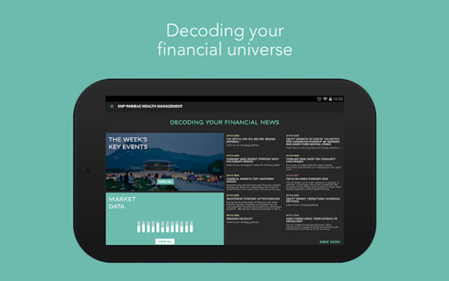 Capital Markets, Equities, Bonds, Real Estate, Foreign Exchange Market... Organised by asset class, the Voice of Wealth application will allow you to follow at a glance your favourite investment themes and all the latest financial news.