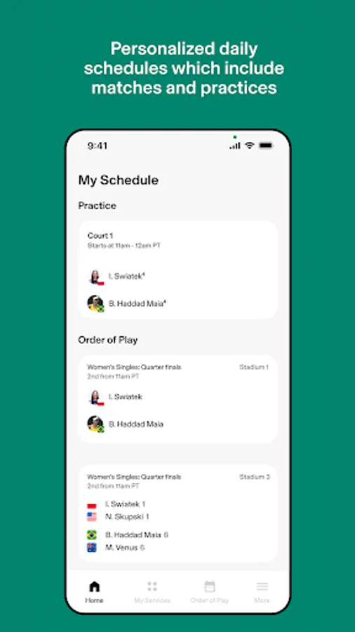 - Personalized match schedules & services