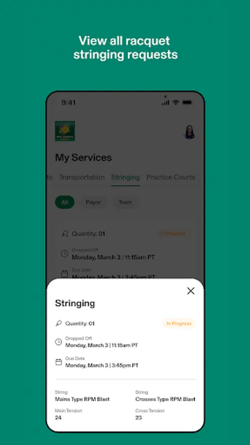 - Download match play photos & view racquet stringing status