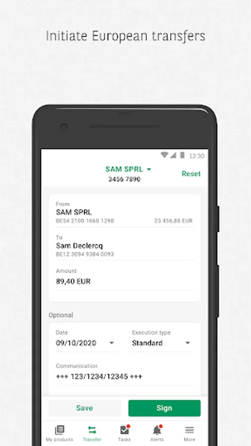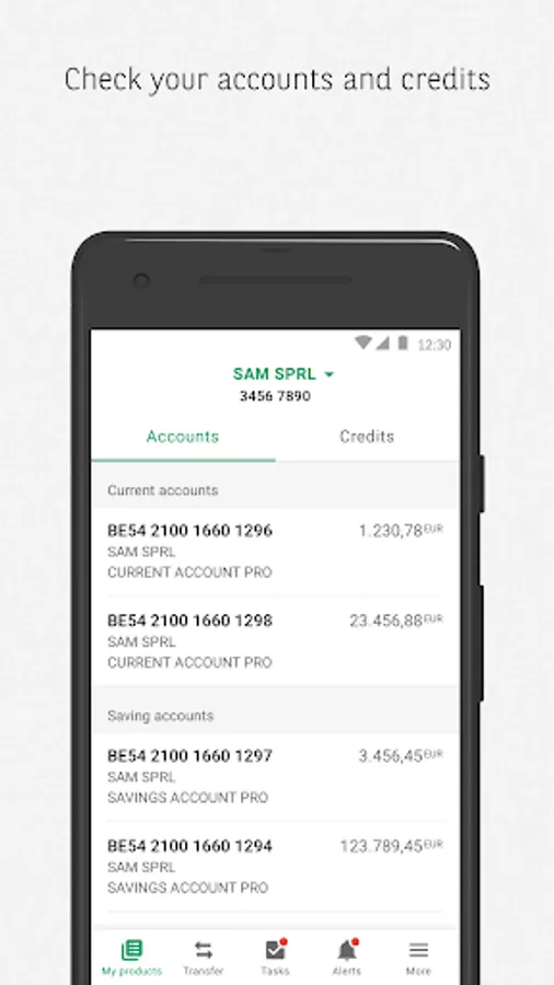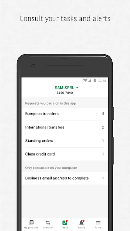 By installing the app, you can execute some of the most frequently performed banking tasks on your smartphone or tablet, giving you control over the finances of your company on-the-go and at all times: