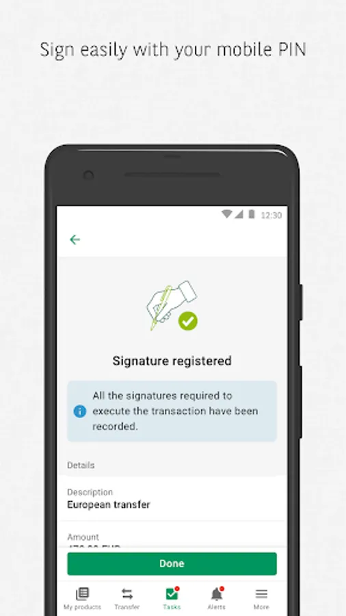 - Log in easily and safely with your 5-digit mobile PIN, your fingerprint or through face recognition