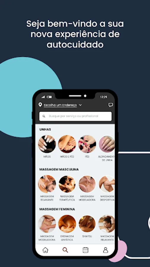 Schedule services in a few taps and pay directly through the app, with card or PIX.