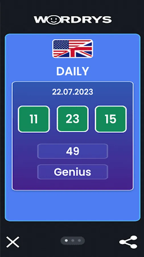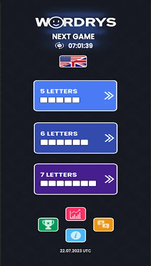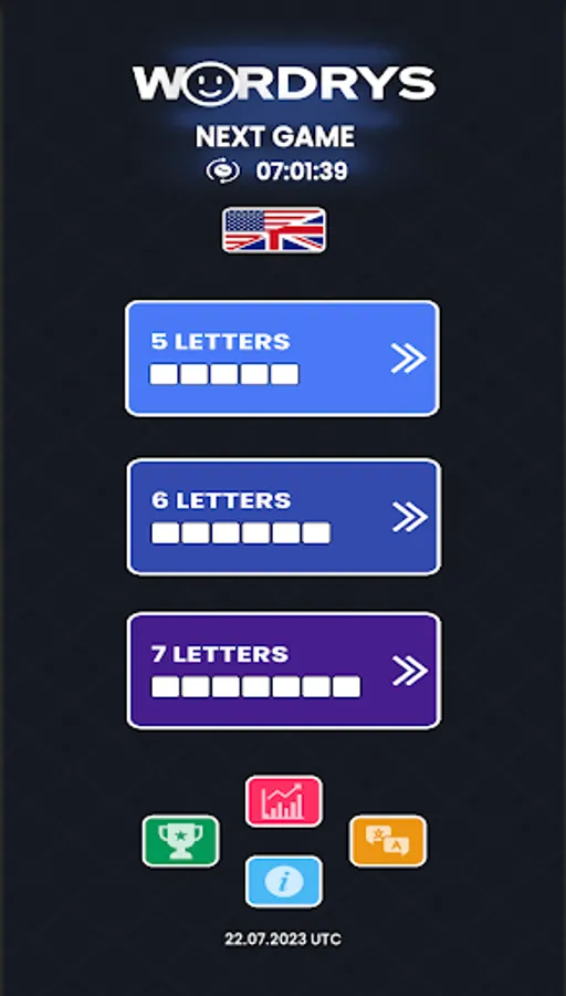The game can be played in 7 languages, and according to the UTC time zone, players can compete in each language for 3 words every day. Based on your performance with these 3 words, you can share your statistics with friends or compete with players worldwide on the daily leaderboard, challenging their scores.