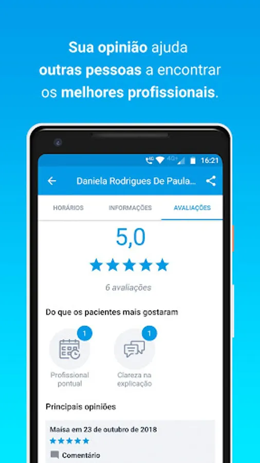 See what other patients say about specialist care and have more security to schedule your appointments. Help other users by leaving your rating.