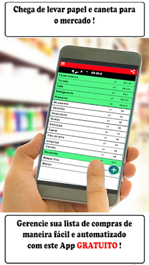 App in order to manage shopping lists, being able to mark products already purchased and automatically adding the value and total result of the fair.
