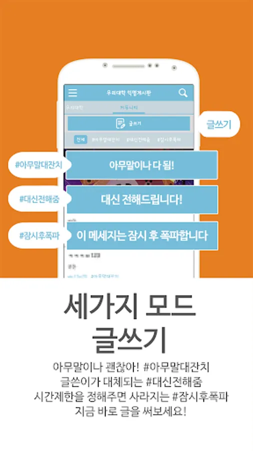 You can freely share stories about the school and the whole community at [My University Anonymous Board].