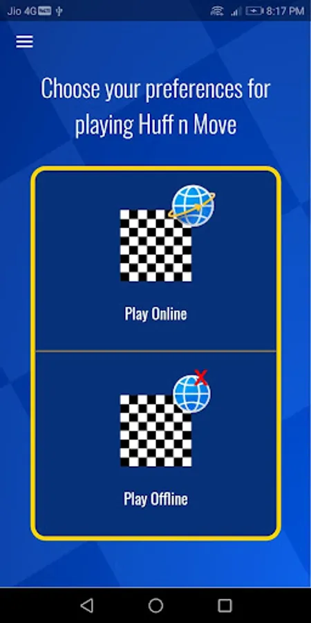 THESE ROWS ARE USED FOR THE ADVANCEMENT OF A THRILLING DIAGONAL DUEL. THE PIECES ADVANCE DIAGONALLY, ONE SQUARE PER MOVE. CAPTURING AN OPPONENT'S PIECE OCCUR BY JUMPING IT DIAGONALLY. IF AN OPPONENT'S PIECE IS DIRECTLY DIAGONALLY IN FRONT OR BEHIND YOUR PIECE AND HAS A FREE SQUARE DIRECTLY IN FRONT OR BEHIND IT AND IT'S YOUR TURN TO MOVE YOU MUST CAPTURE THAT PIECE OR AS MANY PIECES ARE IN LINE FOR CAPTURE IN THAT SINGLE MOVE. NOTE WELL, THIS IS THE ONLY TIME A PIECE MAY MOVE BACKWARDS WITHOUT ADVANCING TO HIS OPPONENTS FINAL FOUR SQUARE. IF YOU ADVANCE TO YOUR OPPONENTS FINAL FOR SQUARE YOUR PIECE WILL BE PROMOTED TO A KING. THE KING HAS POWERS TO ROME THE ENTIRE BOARD AND ABLE TO MOVE THE FULL LENGTH OF EACH CHECK HE IS IN AND IN ANY DIRECTION. HE MUST CAPTURE ANY PIECE IN HIS WAY AS LONG THEY ARE NOT ADJACENT IN THE SAME CHECK. THE KING MUST CAPTURE ALL PIECES ALONG THE ROUTE IN ANY PERPENDICULAR CHECK BUT MAY NOT CAPTURE A PIECE THAT IS DIRECTLY PARALLEL TO THE PIECE BEING CAPTURED. SHOULD THE KING OR A PIECE FAIL TO ACCEPT A CAPTURED, THEN A PENALTY OF LOSING THE PIECE OR KING TO WHICH THE OFFER WAS MADE TAKES EFFECT MY MOVING IT FROM THE BOARD. THIS IS CALLED A HUFF AND IMMEDIATELY AFTER, YOU ARE ABLE TO MAKE A MOVE, BEFORE YOUR OPPONENT IS ABLE TO MOVE AGAIN. HENCE THE NAME HUFF N MOVE. THE GAME HAS THREE POSSIBLE RESULTS WIN, LOSE OR DRAW. TO WIN THE GAME YOU WILL NEED TO HAVE ONE OF THE FOLLOWING SCENARIOS 1) YOU HAVE CAPTURED ALL YOUR OPPONENTS PIECES 2) BLOCKING ALL YOUR OPPONENTS PIECES AND HAVING THE LAST MOVE. TO LOSE IS DIRECTLY IS THE DIRECT OPPOSITE OF WINNING. TO DRAW THE GAME MEANS EACH PLAYER IS UNABLE TO CAPTURE ALL THEIR OPPONENTS PIECES OR FULLY BLOCKED UP ALL THEIR OPPONENTS PIECES AND HAVE THE LAST MOVE. PLAYING HUFF N MOVE ALLOWS YOU ONE MORE OPTION OF PLAYING WITH A THIRTY SECOND TIMER PER MOVE IF YOU CHOOSE TO PLAY WITH A TIMER. IF THIRTY SECONDS RUNS OUT ON ANY PLAYER IT BECOMES THEIR OPPONENTS TURN TO MOVE. ALL OTHER RULES REMAIN IN EFFECT. PLAYING HUFF N MOVE OFFERS YOU THE EXTREME AND INTENSE FEELING OF BEING IN A COMPETITIVE ARENA WITH PERSONS FROM ALL OVER THE WORLD WHILE SITTING IN THE COMFORT OF YOUR LIVING ROOMS, WHILE TRAVELING, SIMPLY PASSING TIME OR SHARPENING YOUR COMPETITION SKILLS. THIS GAME RELAXES YOU BUT SHARPENS YOUR INTELLECT. IT IS AVAILABLE BOTH ONLINE OR OFFLINE FOR BOTH ANDROID AND IOS .