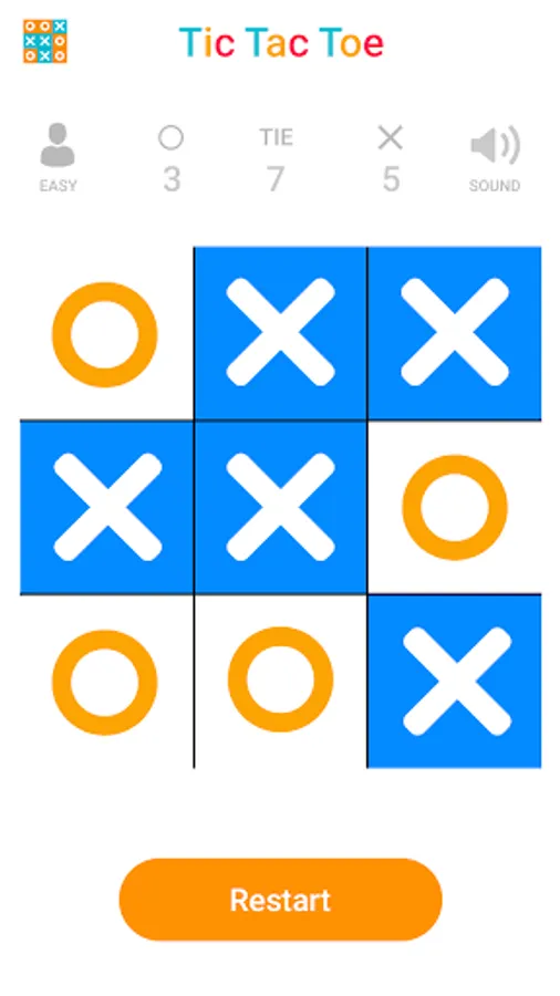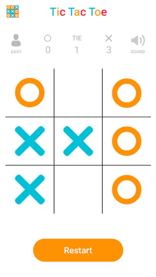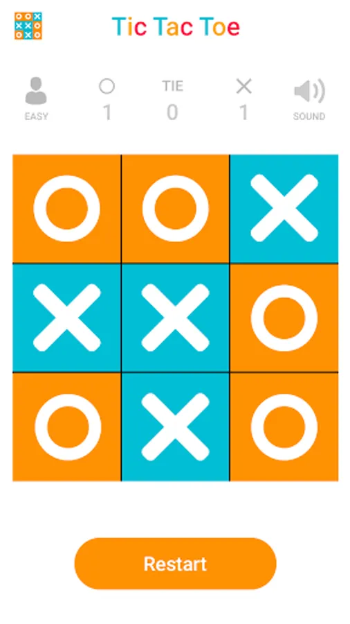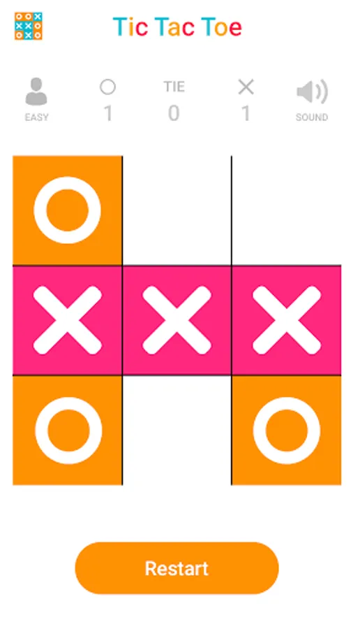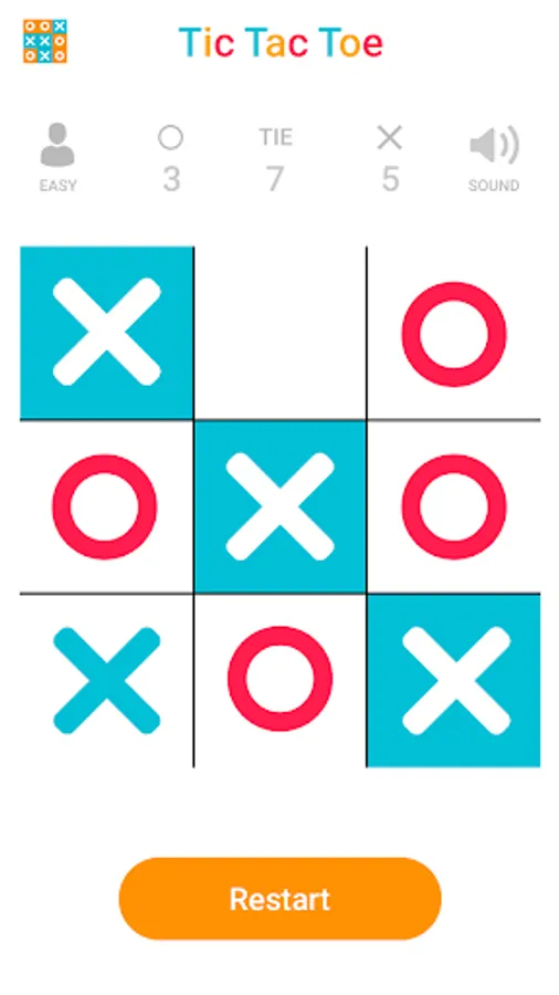 Play tic tac toe (a.k.a Noughts and Crosses, Three in a row, tres en raya) in single player mode against an AI player or in two player mode against your friends and family.