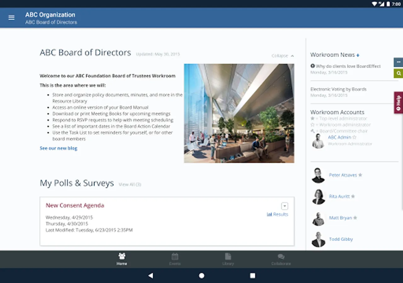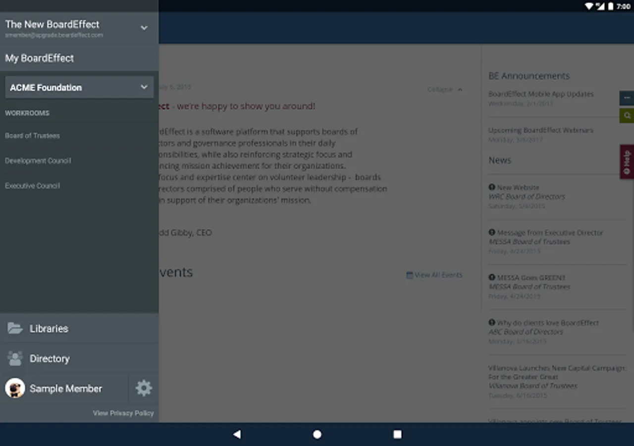 BoardEffect’s Android App connects to your BoardEffect board platform. The App allows your board members to: