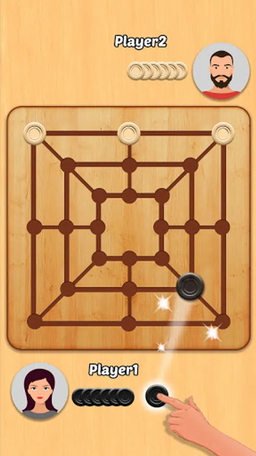 Nine Men's Morris Game 2021 is a traditional two-player strategy board game for two players. It is also known as Mmele game a Traditional game played throughout Southern Africa and Char Bhar(9 goti) Game in India.