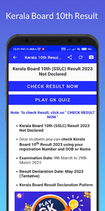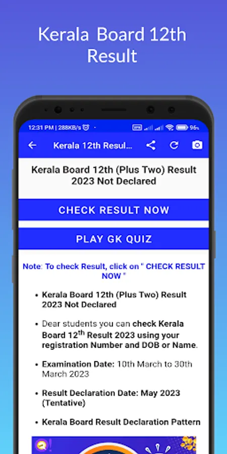 With Help of this you can Check Your Kerala SSLC Result 2023 and Kerala DHSE Plus Two Result 2023 it is very fast and smooth app for checking Kerala board result 2023 app it have pdf save option which help you to save your result in PDF Format. this App also show Kerala SSLC 10th & (DHSE Plus 2) 12th result 2023 expected date wit help of this app.