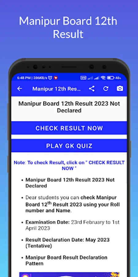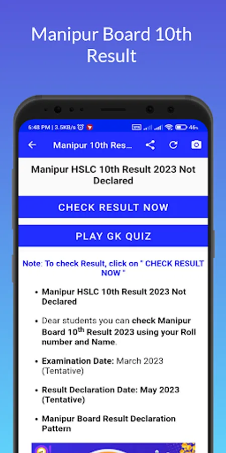 This app can notify you whenever the result is declared through push notification. it is best for students who are waiting for Manipur board result they update about result through this app. it is good for those who have no experience for using the internet who see the fastest board result throughout this app. you can check Manipur HSLC Result 2023 through this app when they are release result you are able to check your board exam result easily. it is also good for checking SSLC result 2023 & HSE 12th result 2023.